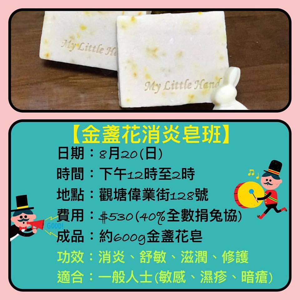 My Little Hand 一直關心動物,特別兔兔繼上次全數義賣手工皂後,今次再自發將【金盞花消炎皂班】所收的費用捐出40%予「香港兔友協會」幫助一大班被遺棄的兔兔,My Little Hand 只收回場地和材料費用!實行你哋出錢,我就出力!