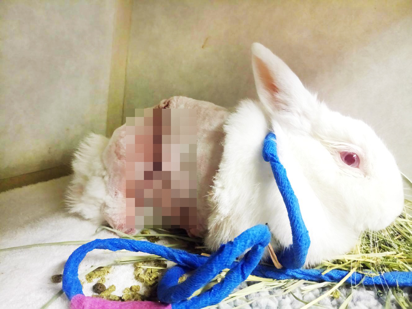 兔兔手術後傷痕遍佈半個身體。(兔協 HKRS)