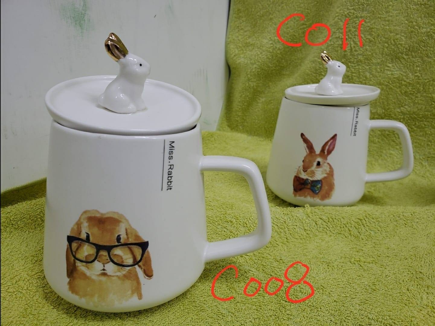 C008 <眼鏡兔>卡通金兔子馬克杯帶蓋 $50.-