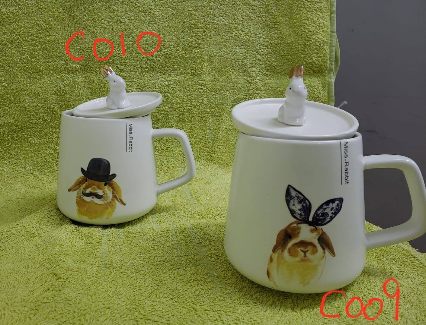 C010 <帽子兔>卡通金兔子馬克杯帶蓋 $50.-