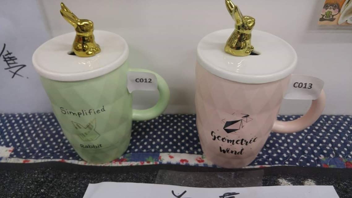 C009 <頭箍兔>卡通金兔子馬克杯帶蓋 $50.-