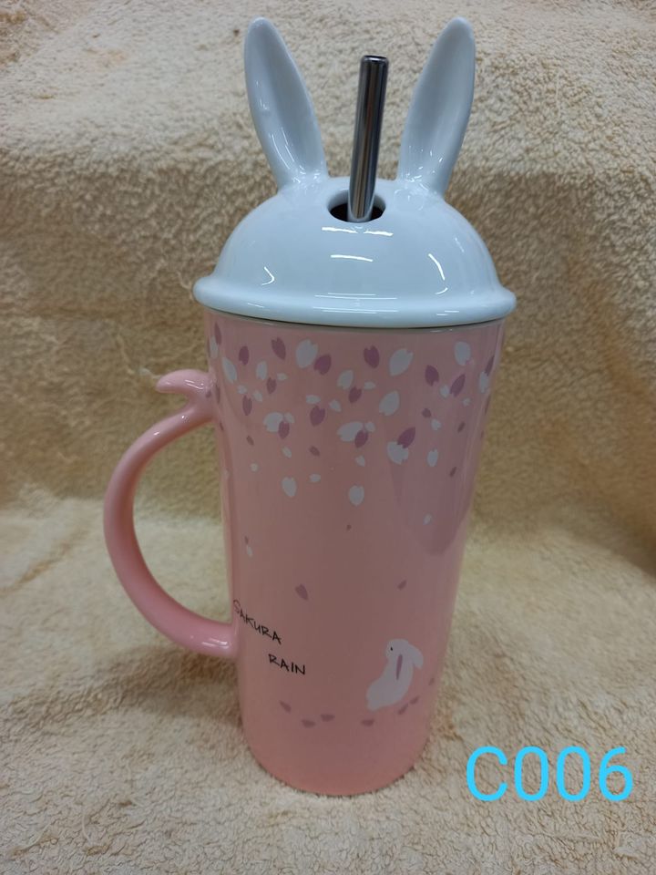 C006 兔子吸管陶瓷杯馬克杯(粉紅色) HKD50.-