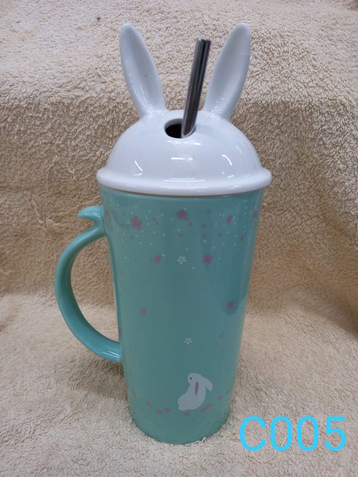 C005 兔子吸管陶瓷杯馬克杯(淺藍色) HKD50.-