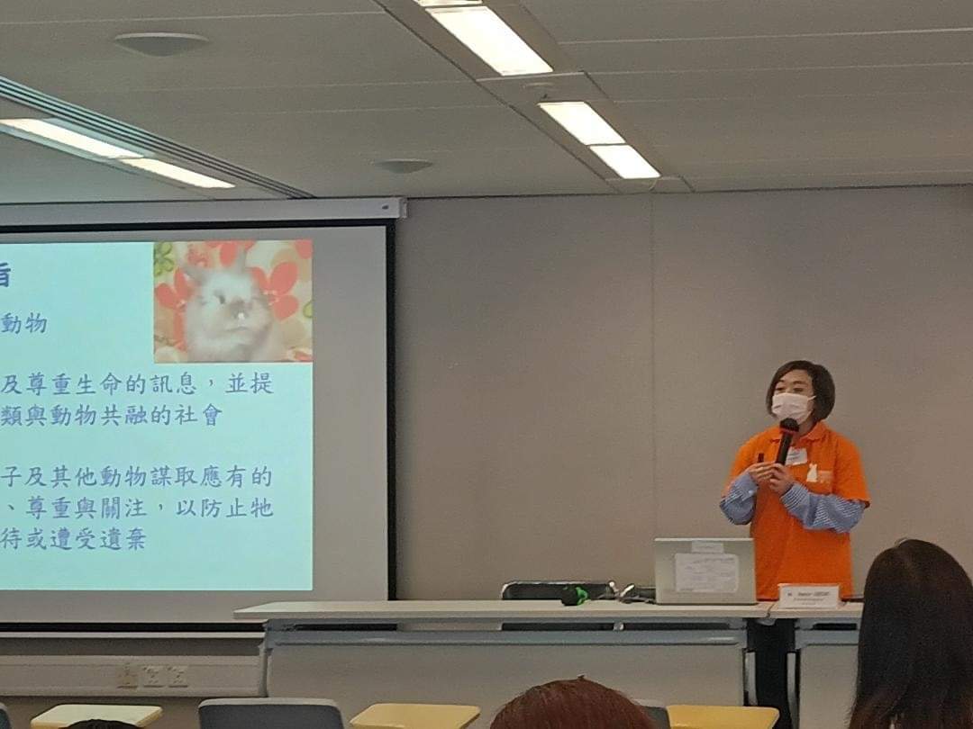 課程名稱:「愛護動物:尊重 • 關懷 • 同理心」 課程內容: 向幼稚園老師及校長宣導正確兔子飼養知識,希望從小朋友開始,得到正確飼養兔子知識及不殺不棄觀念。