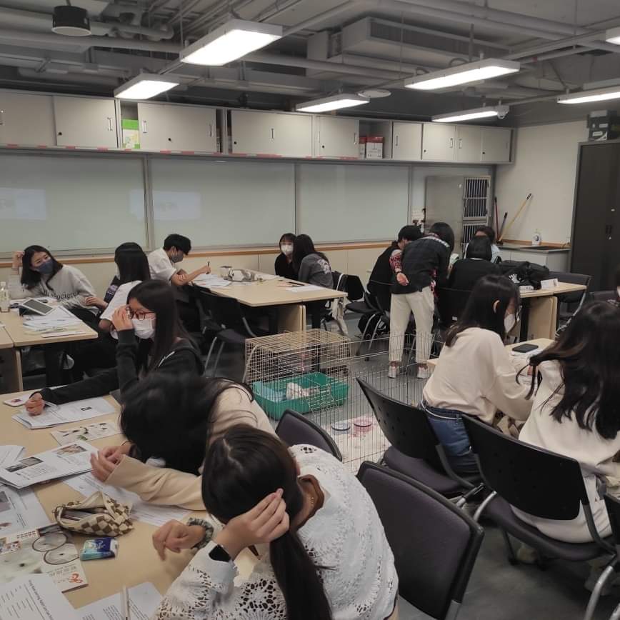 HKRS was invited to teach basic rabbit care, including daily living, diet, and nursing care, giving students who engaged in animal related work a foundation course.
