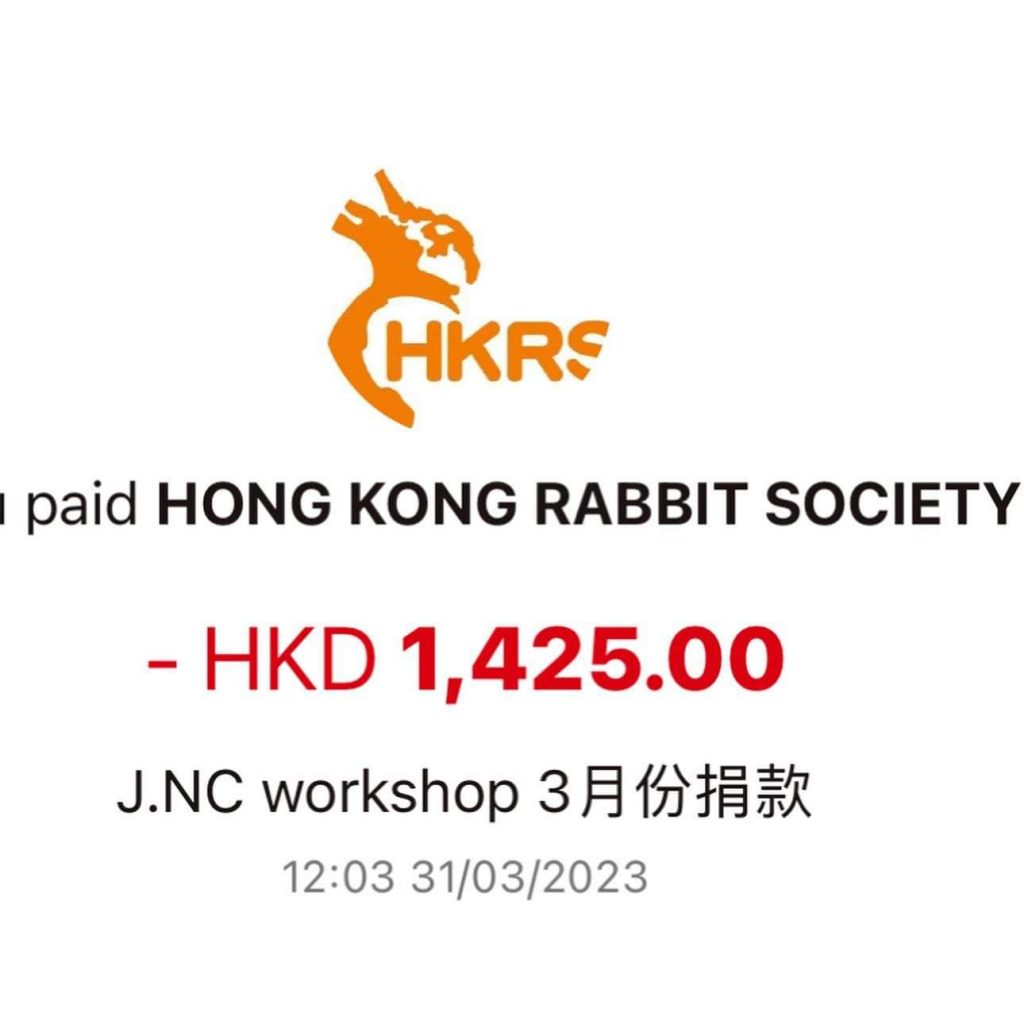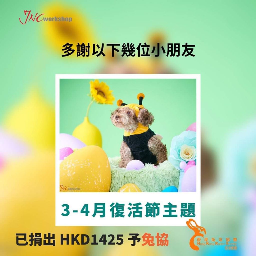 J.NC Workshop 已將2023年3月份所有寵物快閃拍攝服務的收入,捐出1/3 予 兔協 HKRS – 香港兔友協會 Hong Kong Rabbit Society 用作支援機構幫助小動物。