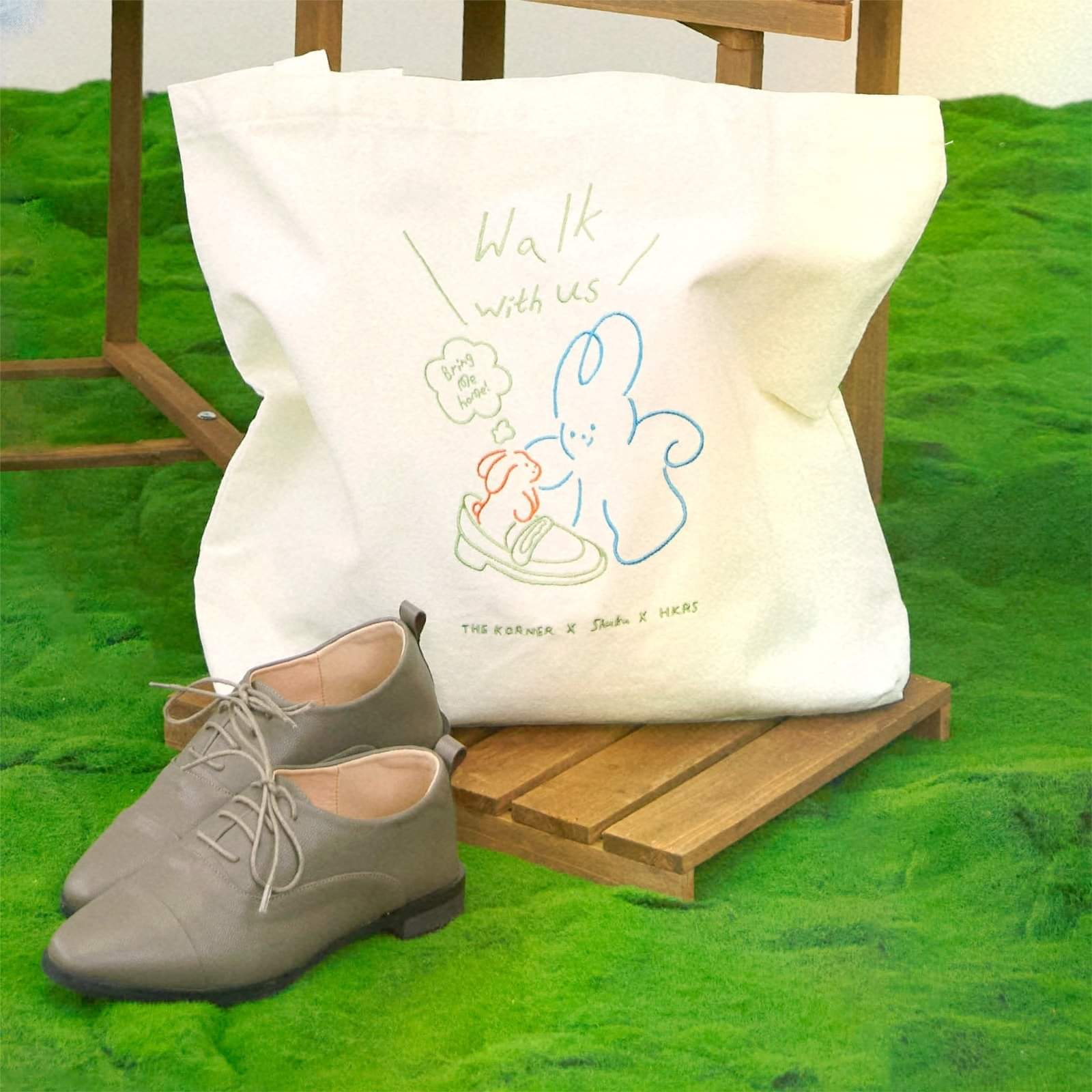 是次帆布袋用上和諧的色調繪畫出 Shuku,待領養小兔子和 The Korner 的經典鞋款,而且特意加大帆布袋尺寸,以最流行的日系大尺寸面世!可愛與實用都兼備❤️🔥