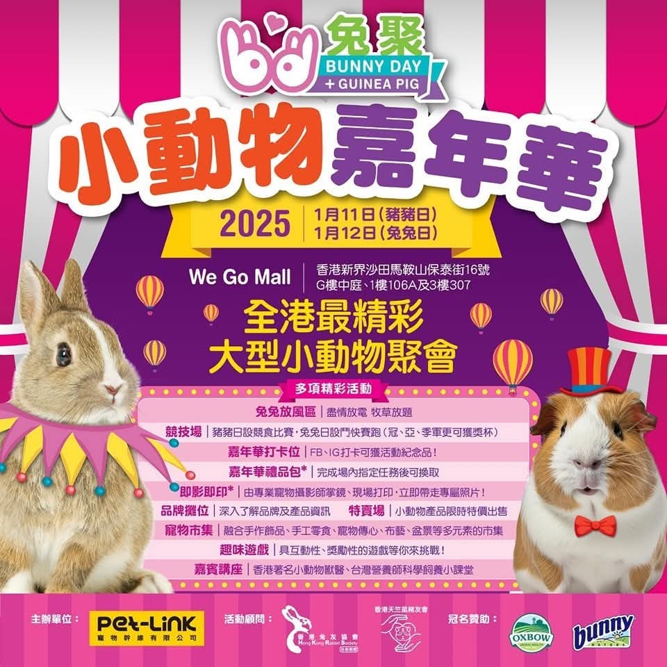 21/12/2024 全港最精彩大型活動之一的 Bunny Day 兔聚 – 小動物嘉年華將於2025年1月11日及12日舉行