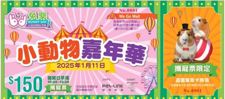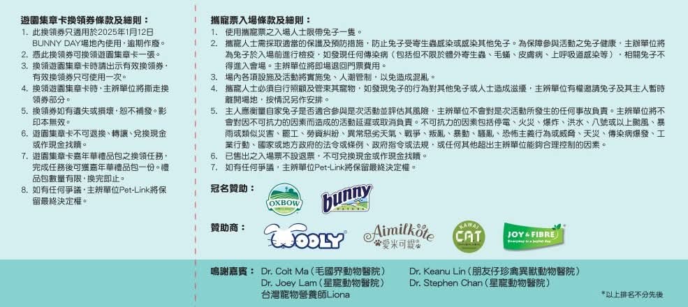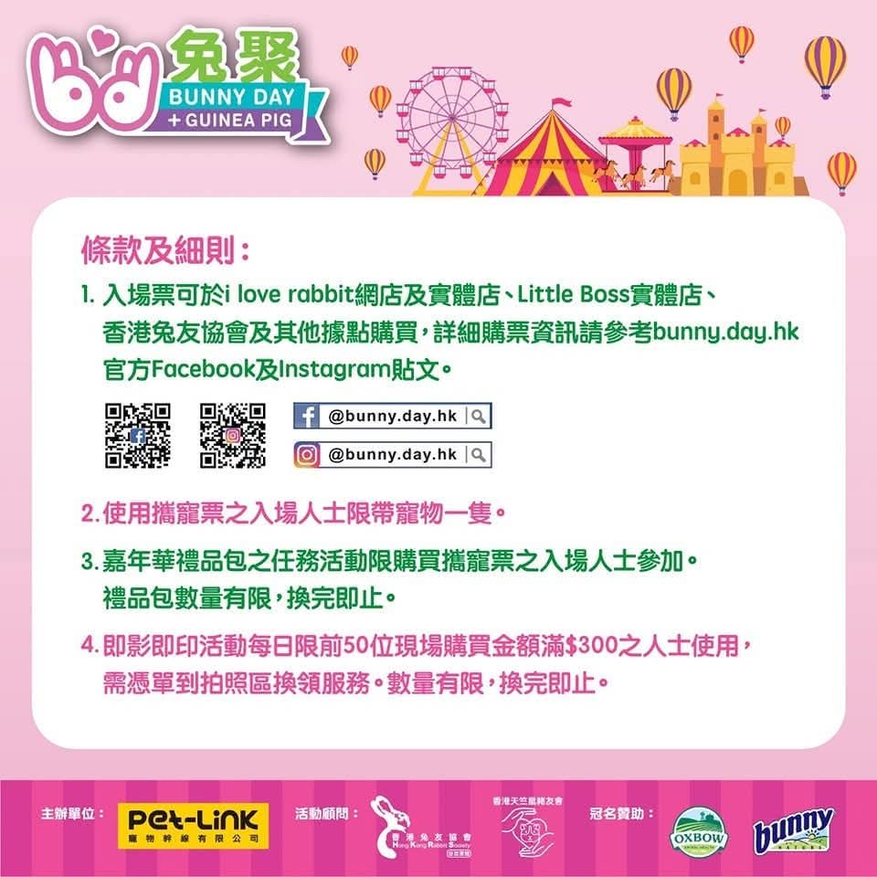 **主人如攜同兔兔出席,請自行評估兔兔是否適合外出和其風險。如果兔兔不適宜外出或沒有養兔的人士又想參加,可購買同行票進場。