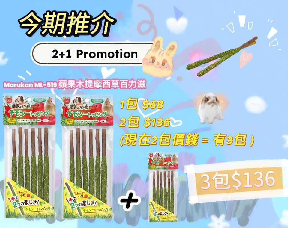 🎁 (2+1優惠) Marukan ML-519 蘋果木提摩西草百力滋 (3包) ➔推廣價$136