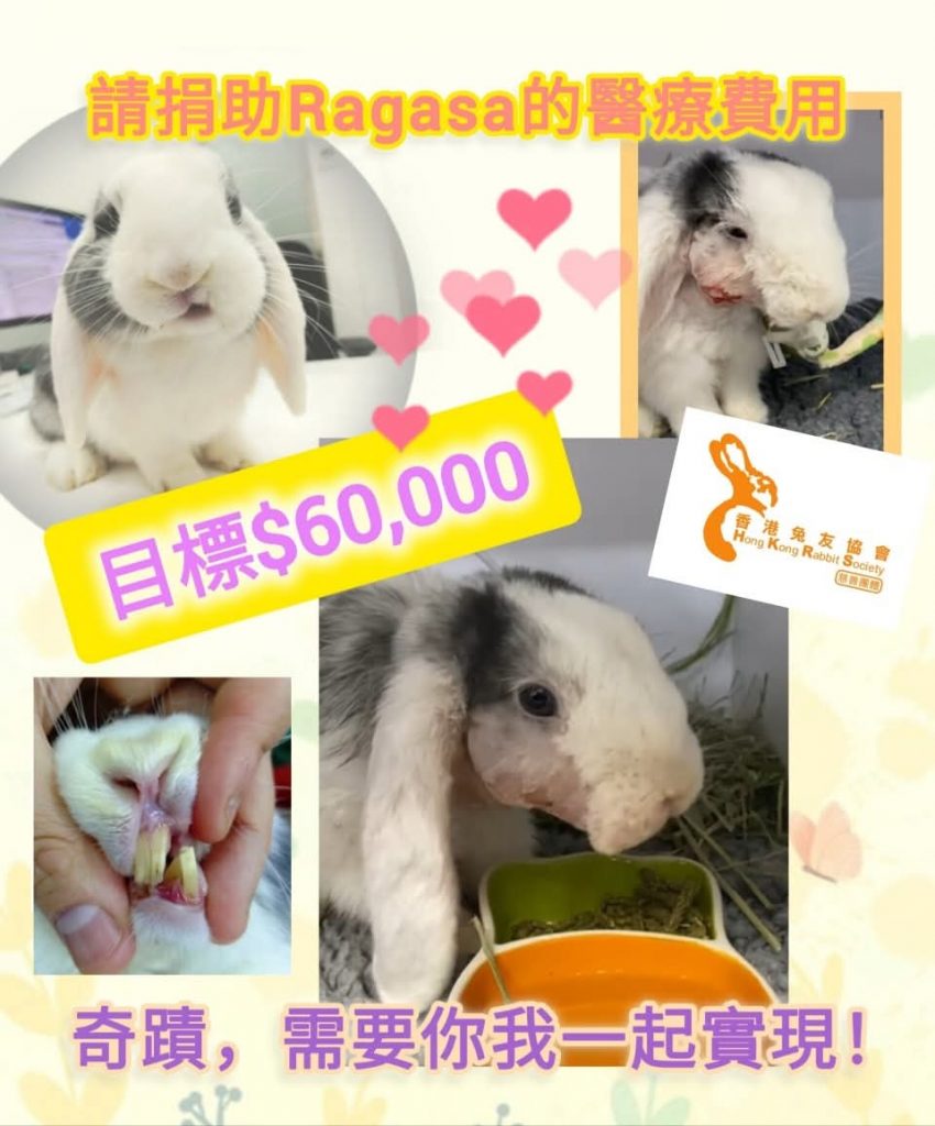 「只要我們不放棄每一條生命,奇蹟就會發生!」一隻只有8個月大的垂耳兔Ragasa,8月底他經歷了一場可怕的家居意外發生——Ragasa的頭部被電動梳化夾住,導致右下顎骨粉碎性骨折。