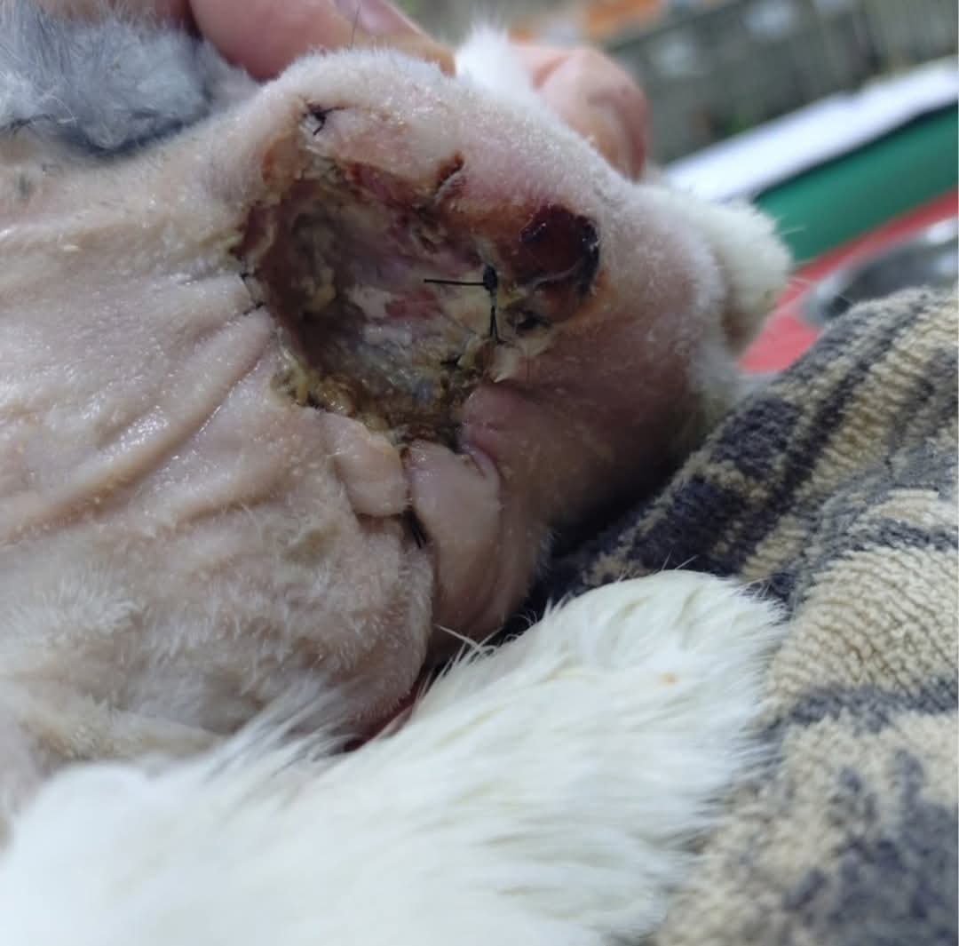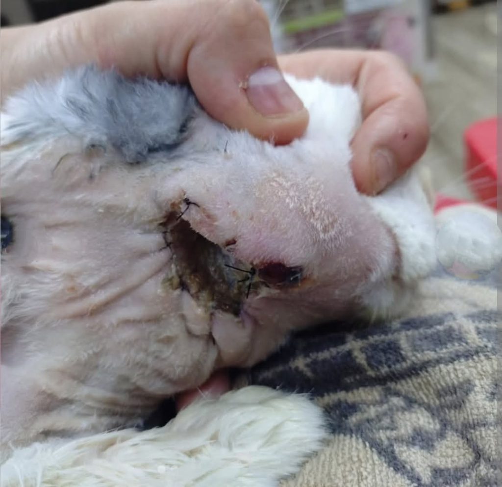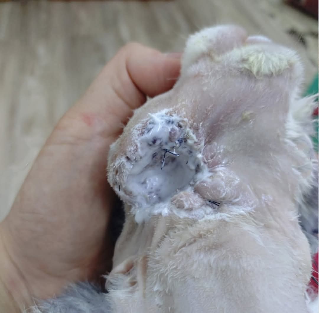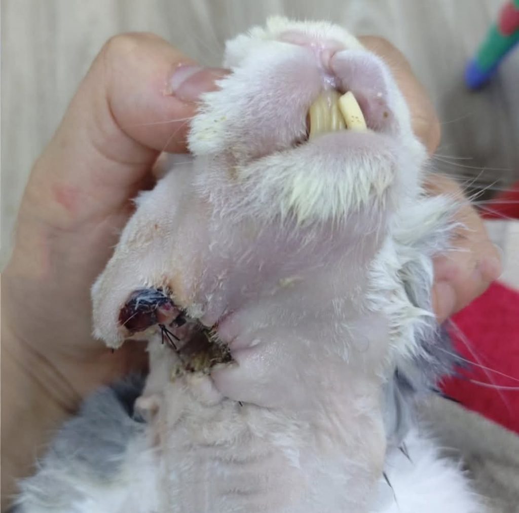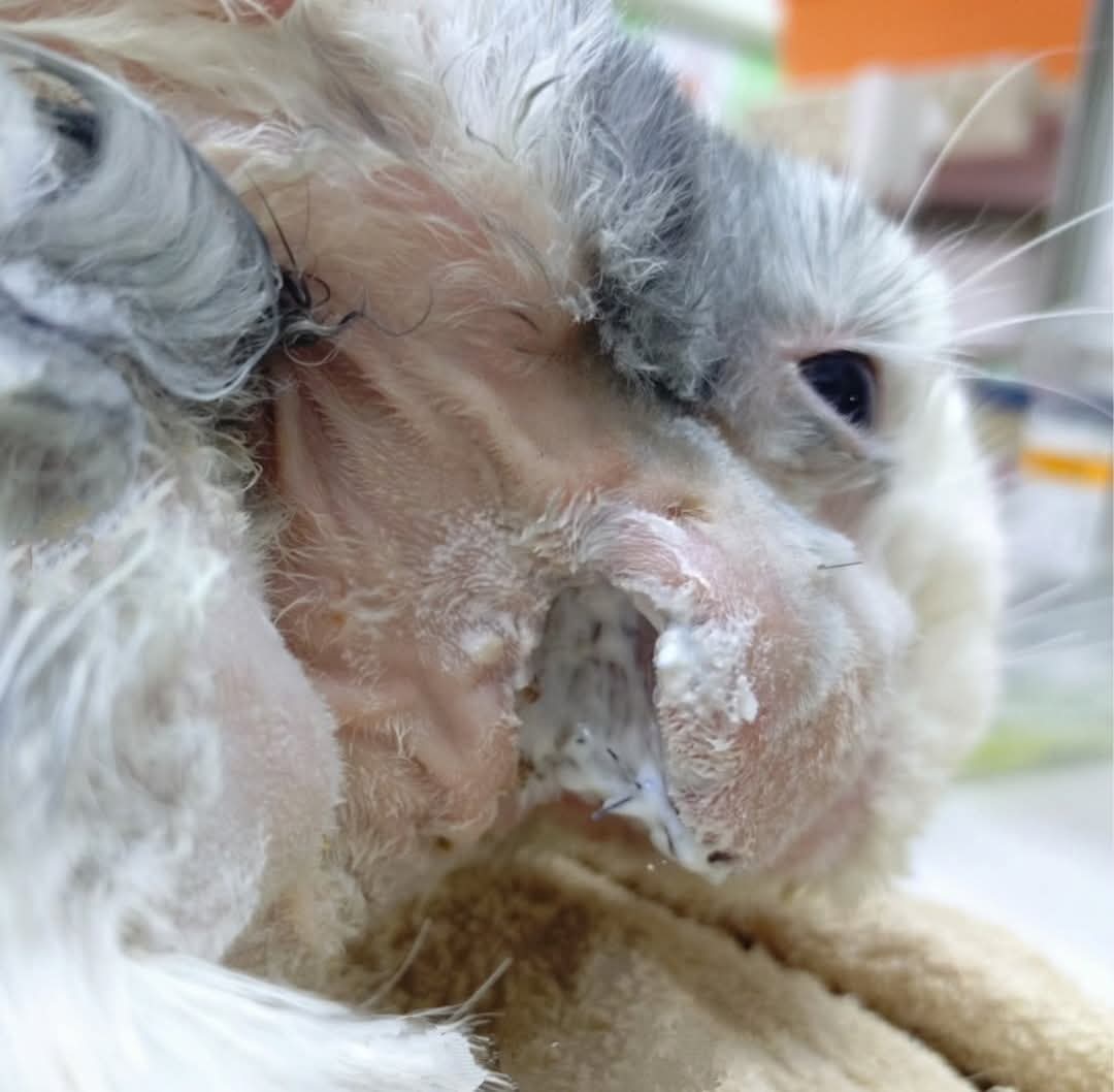 9月21日,前主人向兔協求助,我們即時接收了Ragasa並安排他入院治療,第一時間為他吊上止痛鹽水,以緩解因骨折和膿瘡帶來的痛楚。