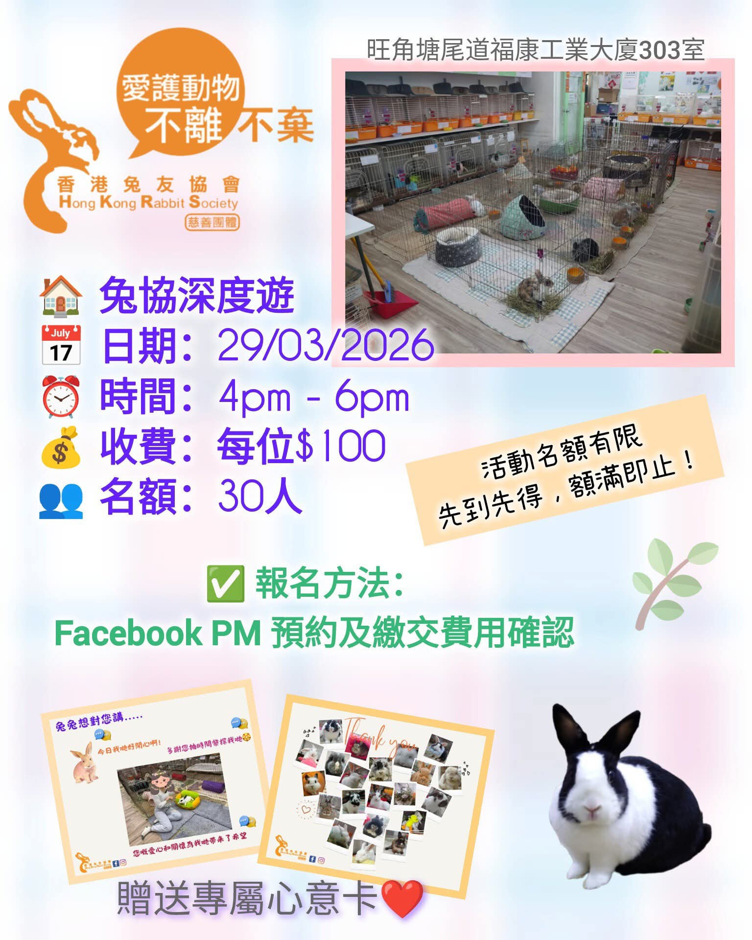 🎫 收費:每位$100 (全數捐助被遺棄兔兔)