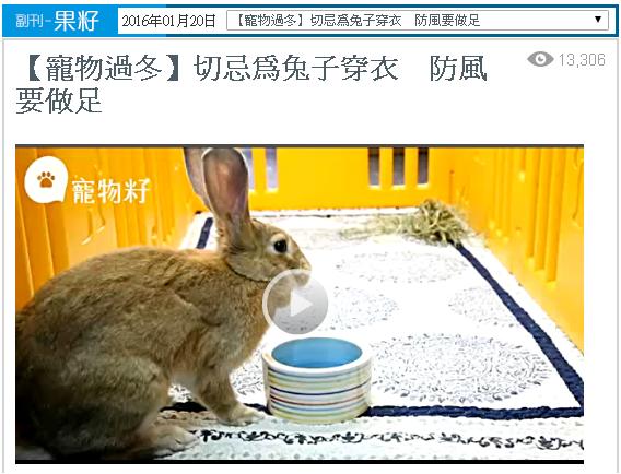 在冬天時,主人也要多加留意兔子的飲食情況。兔子在冬天食量會稍為增加,主人可因應兔子的進食情況,增加牧草份量,乾糧糖份較高,則不宜增多。另外,要觀察兔子在冬天的飲水量有否明顯下降。Claudia建議主人早上把橡筋套在水滿的位置,晚上回家再檢查水位下降的情況,便可輕易觀察到兔子的飲水量會否與平日有異,「如果發現兔子飲水量明顯減少,甚至不喝水的話,可能因為天冷至水溫太低。」不過,主人不需為兔子準備熱水,只要令水保持常溫就可以。Claudia就教了大家一種簡單的保溫法,「準備一個長效暖包包裹水樽,再用棉質厚襪套住水樽,就可以保持水的常溫,免被寒風吹冷。」